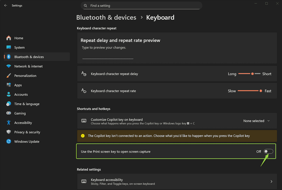 By reassigning that key back to “Print Screen,” your typical screenshot tool should start working again.